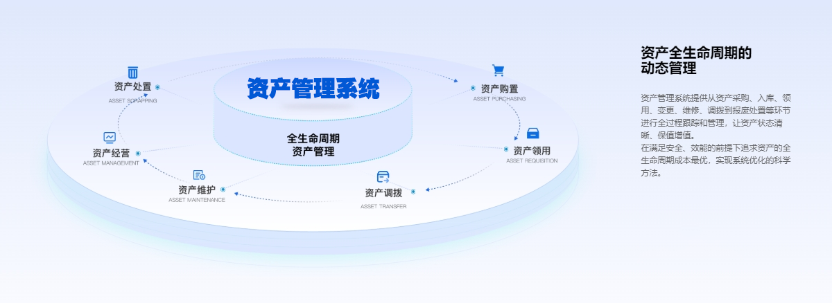 涵盖资产在运营中的各项管理需求,提高资产使用效率,确保资产信息的准确性和实时性。